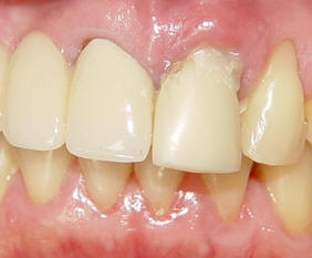 una corona de acrílico completamente desadaptada. (Foto 1).