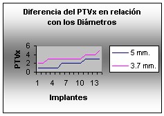 diámetro de 3,7mm y 5mm fueron colocados en un hueso con una densidad D3 o D2 y,